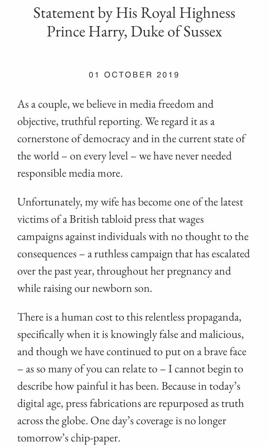 Victoria Derbyshire On Twitter This Statement From Prince Harry About What He Describes As The Bullying Of Meghan By The Tabloid Press Is Incredible Https T Co Jeuvajlnso Twitter
